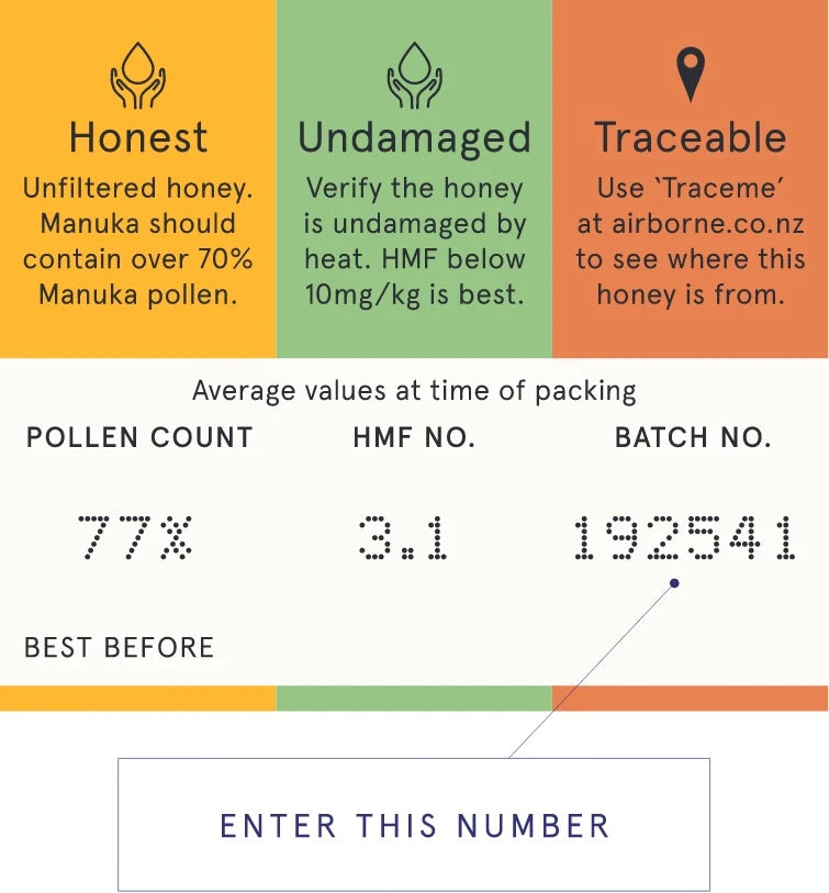 Verify the honey is undamaged by heat. HMF below 10mg/kg is best.